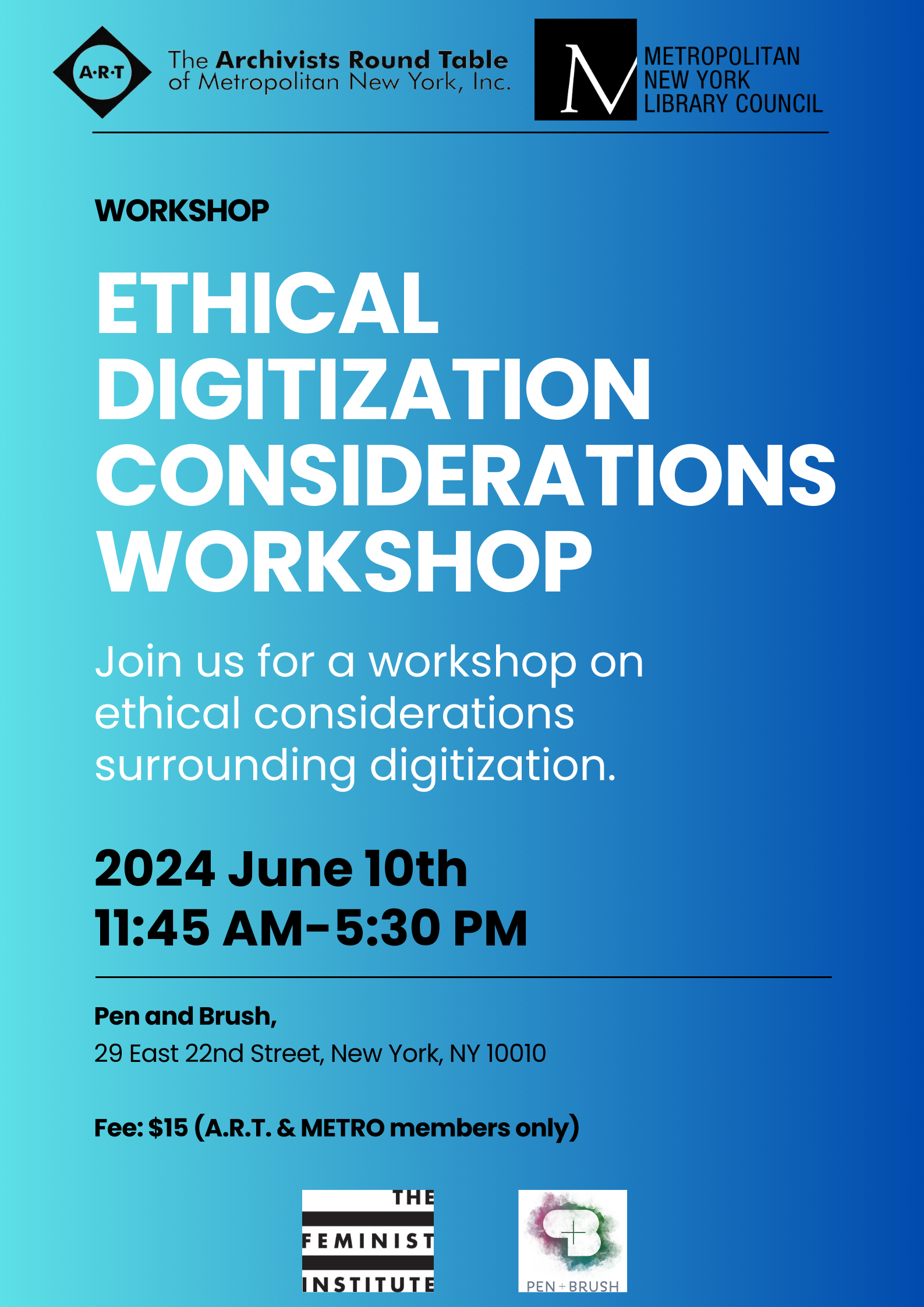 This workshop, developed in collaboration with ART, METRO, and The Feminist Institute, explores ethical considerations in digitizing personal materials and conducting oral histories. Grounded in feminist ethics of care, we examined collaborative and community-centered approaches to archiving, including reciprocal ethnography and participatory cataloging. Participants engaged in hands-on exercises and reflective dialogue around consent, access, and relationship-building in archival work. Ideal for those interested in ethical, inclusive, and grassroots documentation practices.